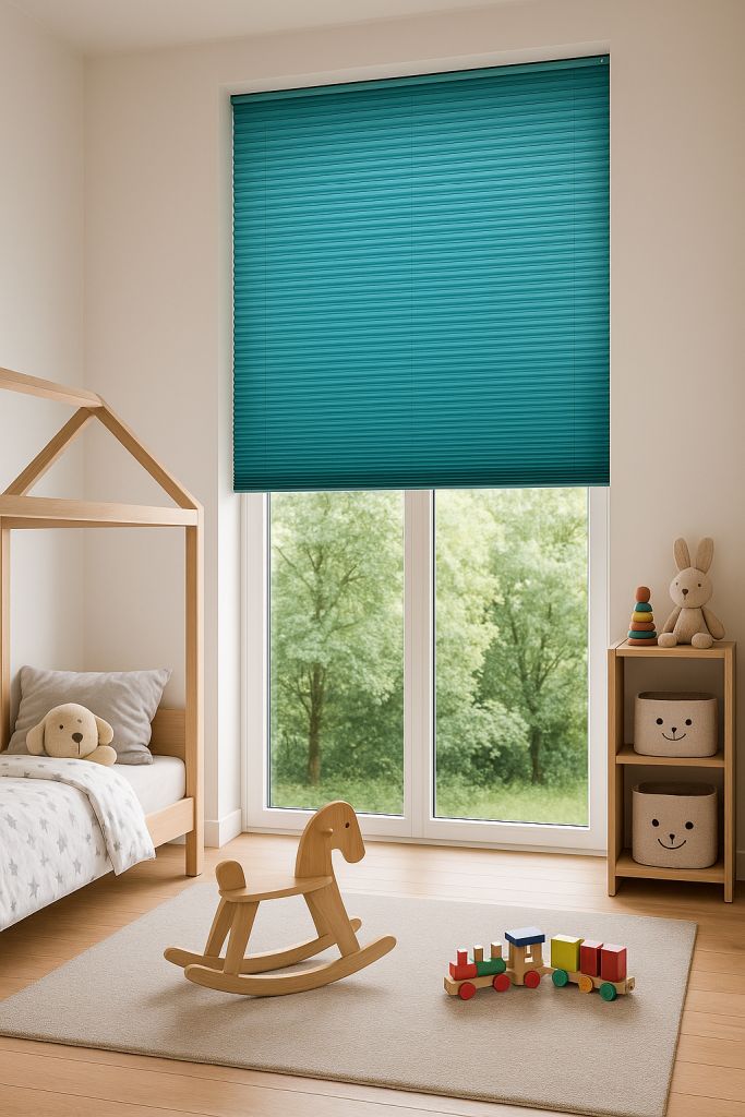 Maßgefertigte Plissee ohne zusätzliche Spannschnüre mit leichtgängiger Bedienung