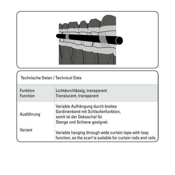 - Verdeckte Schlaufe zur Anbringung an Gardinenstange oder Vorhangschiene (Zusätzliche Gardinenröllchen/-gleiter nötig)