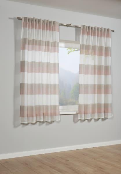 Weiche Wellen in Perfektion ohne steif zu wirken - das ermöglicht der Schal mit Gardinenband in Etamine-Qualität. Das leichte, siebartige Gewebe, durchsetzt mit dezenten Querstreifen in altrosa bringt eine wohnliche Gemütlichkeit. Die verdeckte Schlaufe macht die Befestigung elegant und einfach zugleich.