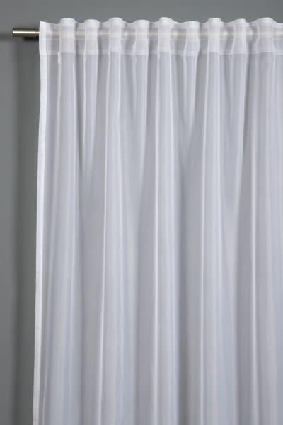 Der leichte Voile Stoff in weiß schafft ein wohnliches Ambiente und passt sich ideal in jede Wohnsituation ein. Ob alleinstehend oder in Kombination mit anderen Vorhängen an einem zweiten Lauf, der Schal mit Gardinenband und verdeckter Schlaufe ist ein wahres Allroundtalent.