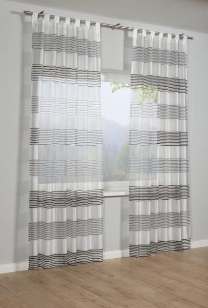 Der Schlaufenschal mit Webstreifen in zwei unterschiedlichen Grautönen wirkt mit seinem seidigen Glanz klassisch und modern zugleich. Das zeitlose Dessin und die praktischen Schlaufen machen den Schlaufenschal Webstreifen zur perfekten Wahl wenn Sie neuen Schwung in Ihr Wohnambiente bringen wollen. Es werden keine zusätzlichen Gardinenringe oder Gleiter benötigt, da der Vorhang direkt an die Gardinenstange gehängt werden kann.