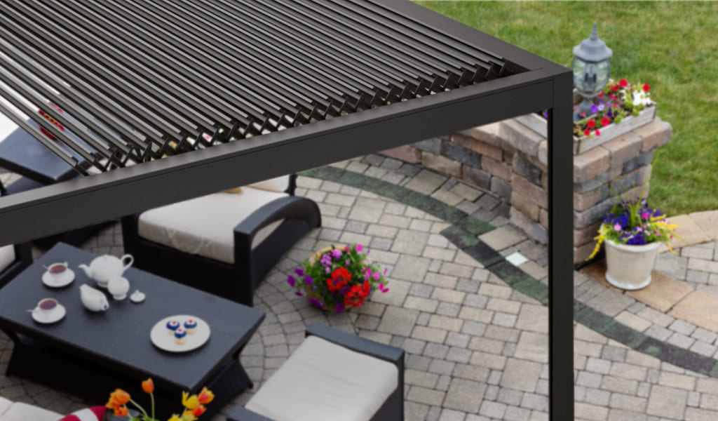 Beim vollständigen Öffnen des Lamellendachs wird Ihnen das Maximum an Licht geboten, während es in geschlossener Position Wetterschutz und Schatten bietet.